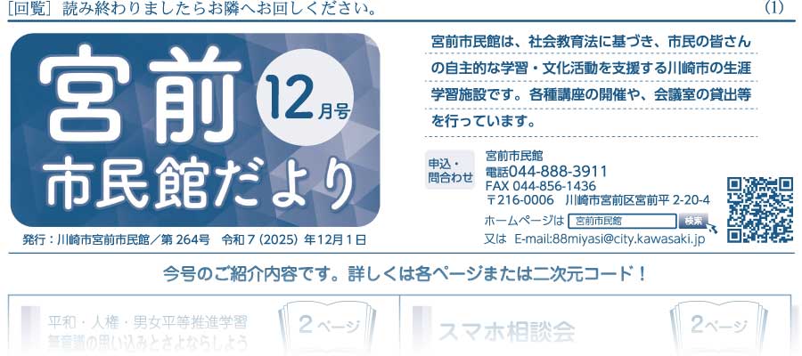 2025年12月4日 / 最終更新日時 : 2025年12月4日 tsutihashi_thp 広報回覧物 広報回覧物(202512) 2025年12月の広報回覧物(11月配送分) ❶ 年末 年始の資源物と普通ごみの収集日程のお知らせ「川崎市環境局」 続きを読む.PDF ❷ 地域の寺子屋を一緒につくりませんか?「川崎市教育委員会事務局」 続きを読む.PDF ❸ プラスチックの分別が簡単に!「川崎市環境局」 続きを読む.PDF ❹ 認知症等行方不明SOSネットワーク「川崎市健康福祉局」 続きを読む.PDF ❺ ねずみが住みにくい環境づくり「神奈川県ペストコントロール協会」 続きを読む.PDF ❻ 宮前市民館だより12月号「川崎市宮前市民館」 続きを読む.PDF